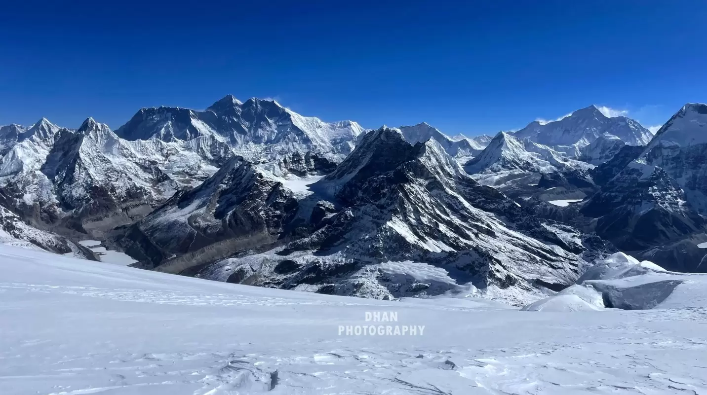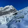 Départ matinal pour atteindre le sommet de l'Amphulapcha. Nous fixerons quelques cordes pour franchir les passages les plus raides du petit glacier. Le Lhotse, avec sa face Sud et son océan vertical, offre une vue panoramique sur le versant Khumbu lors de cette traversée.