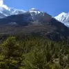 Aujourd'hui, nous allons subir un changement radical de décor. Le sentier suit alors l'étroite vallée escarpée à travers les bois de pins et de petits villages, avec plusieurs hauts et des bas, jusqu'à ce que vous atteigniez le village verger de Bhartang. Nous continuons jusqu'à un pont et nous traversons la rivière où les impressionnantes parois rocheuses courbes de Paungda Danda s'élèvent de la rive, et la montée au village de Pisang (3300 m). Sapectaculaire vue sur les Annapurnas depuis Pisang.