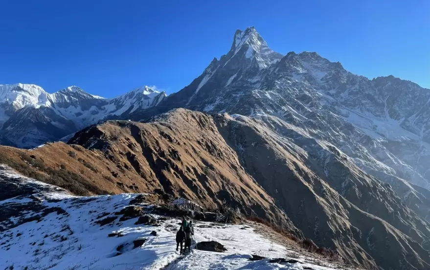 Ce jour-là, nous nous réveillerons tôt pour apprécier le lever du soleil sur l'Himalaya. Ce moment est légendaire. Ensuite, nous prendrons le petit-déjeuner et nous monterons au point de vue Mardi Himal, à 4500 m. C'est l'un des jours les plus extraordinaires où l'on peut profiter des magnifiques panoramas.