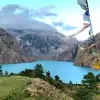 Une des plus impressionnantes journées de notre trek. Nous marchons à flanc de montagne en admirant la végétation verdoyante, les forêts de conifères et les genévriers. Après avoir marché sur une prairie magnifique, nous atteignons le lac du Phoksundo, qui est vraiment impressionnant avec sa couleur bleue et ses falaises rouges et brunes. L'après-midi, nous pouvons marcher le long du lac sous une forêt de pins et visiter le monastère Bön en présence d'un moine. Le Dolpo est l'une des rares régions de l'aire culturelle tibétaine à pratiquer cette religion prébouddhique, toutefois très proche du bouddhisme. Beaucoup d'activités au village en soirée : les troupeaux de yacks reviennent des pâturages, des femmes tamisent des graines sur les toits, d'autres vont chercher des pots d'eau, les enfants jouent dans les cours intérieures et les ruelles avec des objets très rudimentaires. Ringmo est un village habité par des Bhotias d'origine tibétaine et des Magars. Hébergement : sous tente.