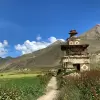 Nous remontons le cours de la rivière Thuli Bheri jusqu'à Tarakot, ancienne bourgade caravanière ; nous entrons en pays bouddhiste. Nous rencontrons des caravanes de mules et parcourons plusieurs hameaux avec leurs jardins de piments. Le chanvre indien pousse partout. Marche dans une gorge encaissée, rivière tumultueuse. Campement près de la rivière ; au-dessus, en crête, Tarakot. Hébergement : sous tente.