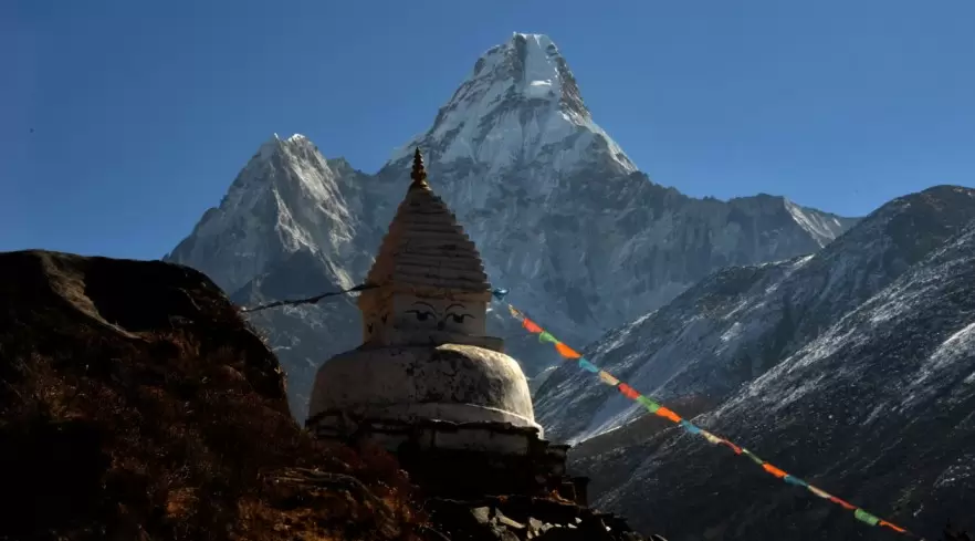 Une vue magnifique presque constante sur l'Ama Dablam, ainsi que sur le Thamserku, tout en montant régulièrement. Nous passons par Pangboche, qui était jusqu'à l'arrivée du tourisme l'un des derniers villages d'altitude habités en permanence. De nombreux villageois de Pangboche sont partis en expédition sur les plus hauts sommets et sur l’Everest. Porteurs, puis sherpas d’altitude et enfin guides pour ceux qui ont réalisé leur rêve. Le village a aussi payé un lourd tribut à la montagne. Vous entrez au cœur du haut Khumbu, et le paysage se fait plus minéral. Dingboche (4400 m) marque l’intersection des vallées de Chukhung et de l’Everest.